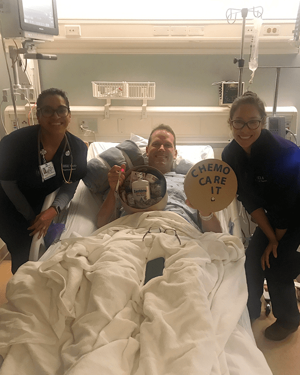 骨髓移植:患者家庭了解到的关于信仰和信任的过程 01/28/2021 “UCLA Health琼森综合癌症中心的移植病人理Richard Hart说:“从来没有人抱怨过,因为我们都心怀感激。” 在他的一生中,Richard Hart始终相信自己的“傻运气”:无论发生什么事,结果都很好。 有人可能会说,当Richard Hart在2019年被诊断出患有急性t细胞淋巴细胞白血病时,他的“傻运气”就用光了,但Hart却不这么认为。 Hart的癌症之旅开始于那年的父亲节,当时他和妻子Jennifer在位于阿古拉山的家中爬楼梯时发现他上气不接下气。Hart以为是夏季感冒,但他的妻子坚持要他们去急诊。 胸部x光显示在他的胸骨后面有一个肿块,急诊医生把Hart送进了洛斯罗伯斯地区医疗中心。“ 医生说,‘直接去那里,甚至不要回家,不要打包任何东西,直接去那里。她的话引起了我的注意,”54岁的Hart说。 在住进洛斯罗伯斯地区医疗中心一个星期后,他接受了纵隔穿刺活检,Hart的检验记录被送到UCLA Health琼森综合癌症中心,接着Hart见到了UCLA Health大卫格芬医学院主任和血液恶性肿瘤/干细胞移植科主任Gary Schiller博士。 “这就像一记重击,”他的妻子Jennifer Hart在谈到诊断结果时说。“它让一切都变得不重要了,你所看到的世界改变了。” 急性淋巴细胞性白血病(ALL)是一种侵袭性癌症,患者的身体在骨髓中产生不成熟的白细胞。骨髓的作用是产生新的血细胞和血小板,它们将氧气输送到组织并对抗感染。当未成熟的白细胞迅速繁殖时,它们会取代正常细胞,这可能导致骨髓衰竭。 作为UCLA Health琼森综合癌症中心一员的Schiller博士说,在美国,这些疾病每年影响约6000人,其中大约一半是成年人。在这些成年人中,约800人像Hart一样患有T细胞淋巴细胞白血病,而且大多数是18到30岁之间的年轻男性。 Hart的从接受诱导疗法开始——接受一个月的化疗输注以清除血液和骨髓中未成熟的白细胞并诱导缓解。 Schiller博士解释说:“如果患者的情况良好,我们可能会继续进行巩固化疗和长达两年的维持化疗来维持缓解。巩固化疗用于杀死可以重新活跃的非活性白血病细胞。” Hart认为,在整个治疗过程中,他一直保持乐观,且专注于眼前的手术。与此同时,他的妻子阅读了所有她能找到的关于她丈夫癌症的资料。 “我觉得我的工作就是保护他不受这些细节的影响,既然我能处理好,我就会处理好,”Jennifer Hart 说。“他的工作就是尽量让自己好起来,吃好睡好,享受生活。” 19岁的Eliza Hart是这对夫妇四个孩子中最小的一个。她说,看到自己强壮健壮的父亲在痛苦中挣扎,让人很难受。 “一开始非常可怕,因为我们不知道接下来会发生什么。但我的父母非常乐观,他们试图保护我们不受任何额外的痛苦或恐惧。他们都非常积极,”她说。 很快,出现了令人鼓舞的迹象。在诱导后进行的测试显示,在Hart的血液或骨髓中就没有了癌细胞。Hart说:“对他们来说,这是一个巨大的医学成功。”“对我来说,这是个奇迹。” 但即使在缓解之后,他疾病的某些特征仍令人担忧,有很高的复发风险。为了防止这种情况发生,他需要进行骨髓移植。令人惊讶的是,他的六个兄弟姐妹中有五个是匹配的捐献对象。 Hart说:“有人告诉我,兄弟姐妹之间这么多匹配的几率比中百万乐透的几率还小。这从来没有发生过。”Hart的每个兄弟姐妹都纷纷表示愿意捐赠。最终,哈特的弟弟Stewart Hart被选为最合适的人选。 “我很高兴,也很愿意。来自犹他州盐湖城的42岁的Stewart Hart说。 为了参加儿子基顿(Keaton)的婚礼,Richard Hart休息了两周,之后又开始接受治疗。在移植前,他在医院接受了六周的大剂量化疗和放疗,以杀死现有的骨髓。Hart强忍住泪水,对上帝的信仰和对治疗过程的信任,让他度过了艰难的时刻。“在整个过程中,真正让我印象深刻的是身边的护士、医生和技术人员。我不记得他们所有人的名字,但我能看到他们每一个人的脸。” “他们是你见过的最好的一群人,”Hart说。Jennifer Hart表示同意。“我可以随时联系他们,有任何疑问,他们也能以最快的速度回复我。” 2019年9月底,移植手术在UCLA Health罗纳德·里根医疗中心进行,从个方面来说移植都是成功的。 Schiller 博士说:“目前没有证据表明他的病会复发,但我们会在他的余生里一直给予关注。” 移植手术一个月后,Hart住进了UCLA Health医疗中心Tiverton House患者之家,他和妻子在那里待了四周才回家。现在他每两周做一次血检,检查癌症是否复发,并筛查移植物抗宿主病。 在移植手术一周年的时候,Hart说他认为他的癌症是一件幸事。 “我意识到我其实过得很好,而不是感觉自己过得很糟糕。从来没有抱怨的理由,因为所有的一切都值得感激。抱怨是对人生的冒犯,因为我被如此善待。”